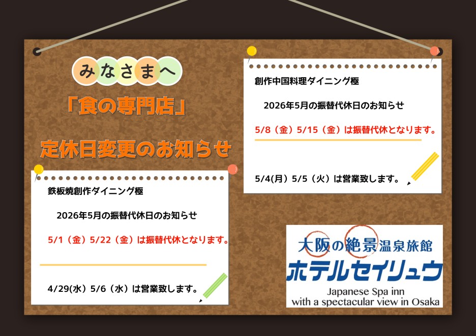 鉄板焼・中国料理ダイニング「極」2026年5月度振替定休日のお知らせ